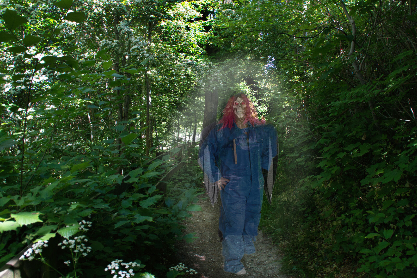 Et spøgelse,et uhyggelig møde. Det er tre billeder lagt sammen, som er lavet til et