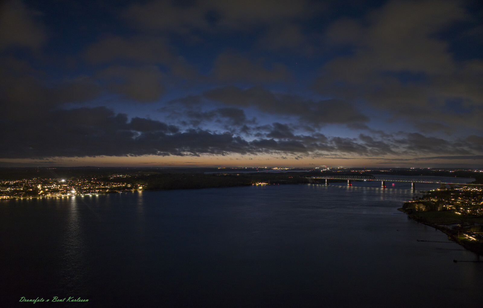 #dronefoto blå time over Lillebælt
