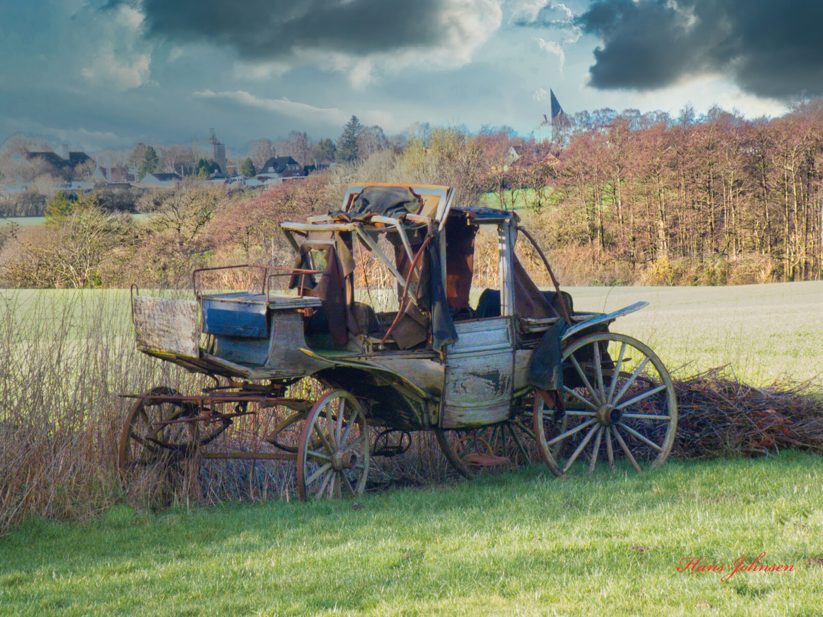Hestevogn i forfald , det er synd den står ved Sillerup mølle