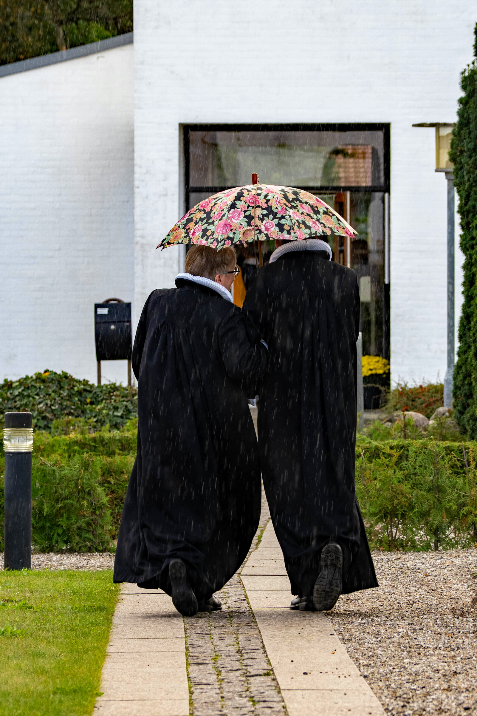 Præstemøde i regnen
