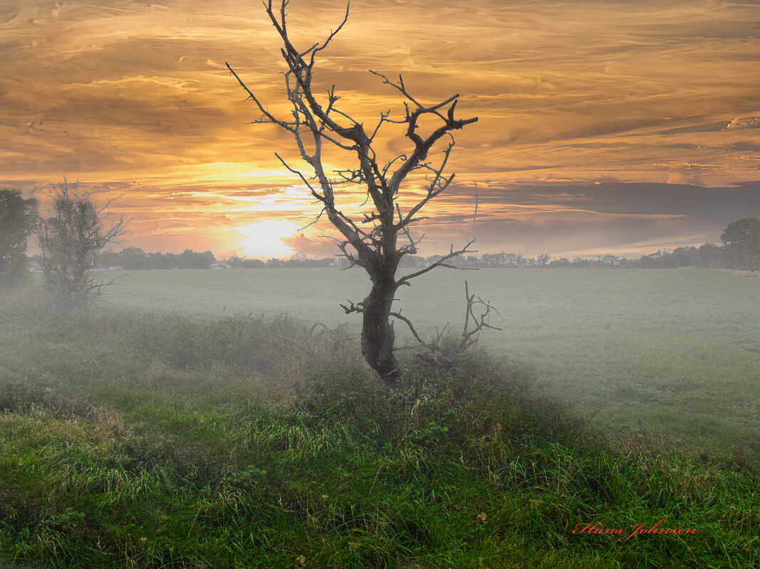 Mogen tur på Årø, dis over marken
