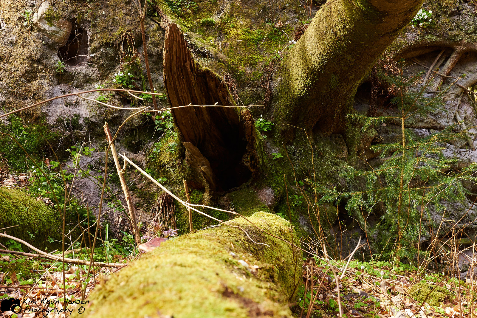 Væltede træer med huler.