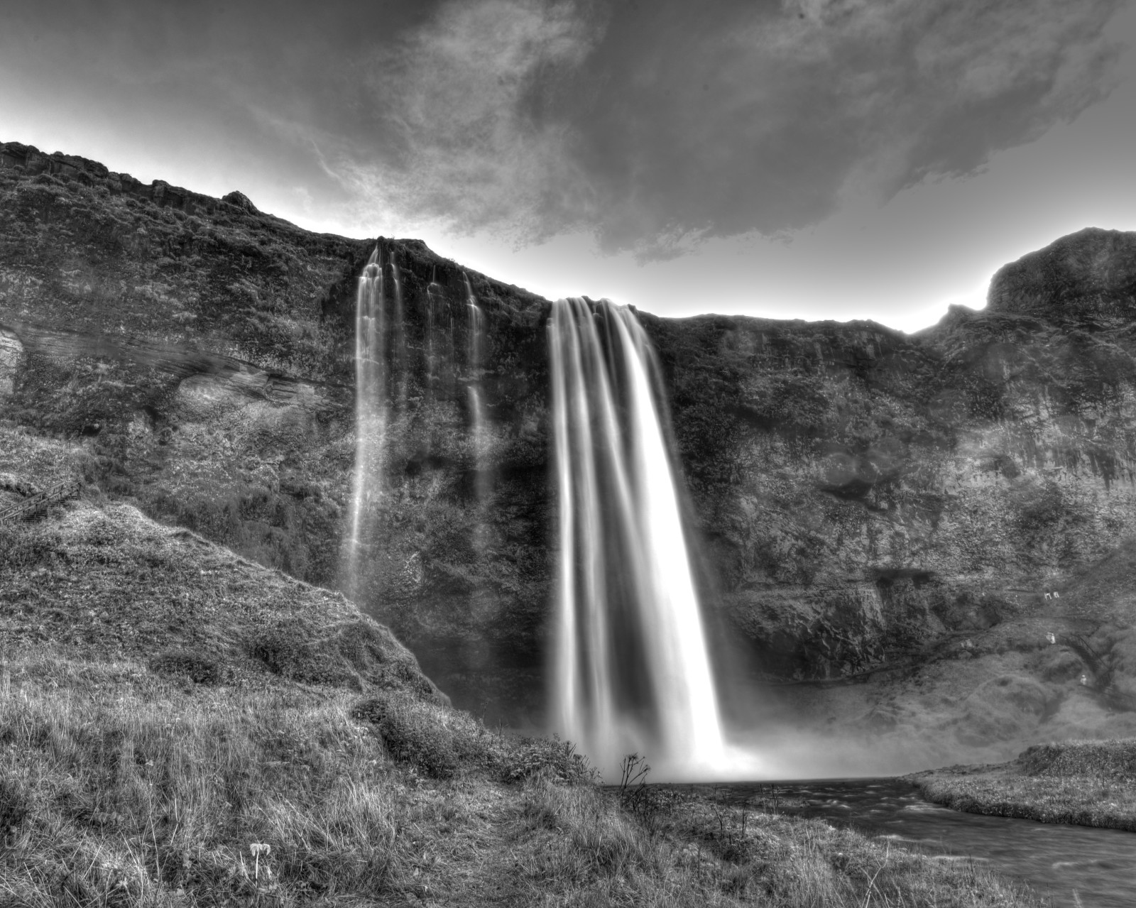 #Island#vandfald#lanskab#sorthvid