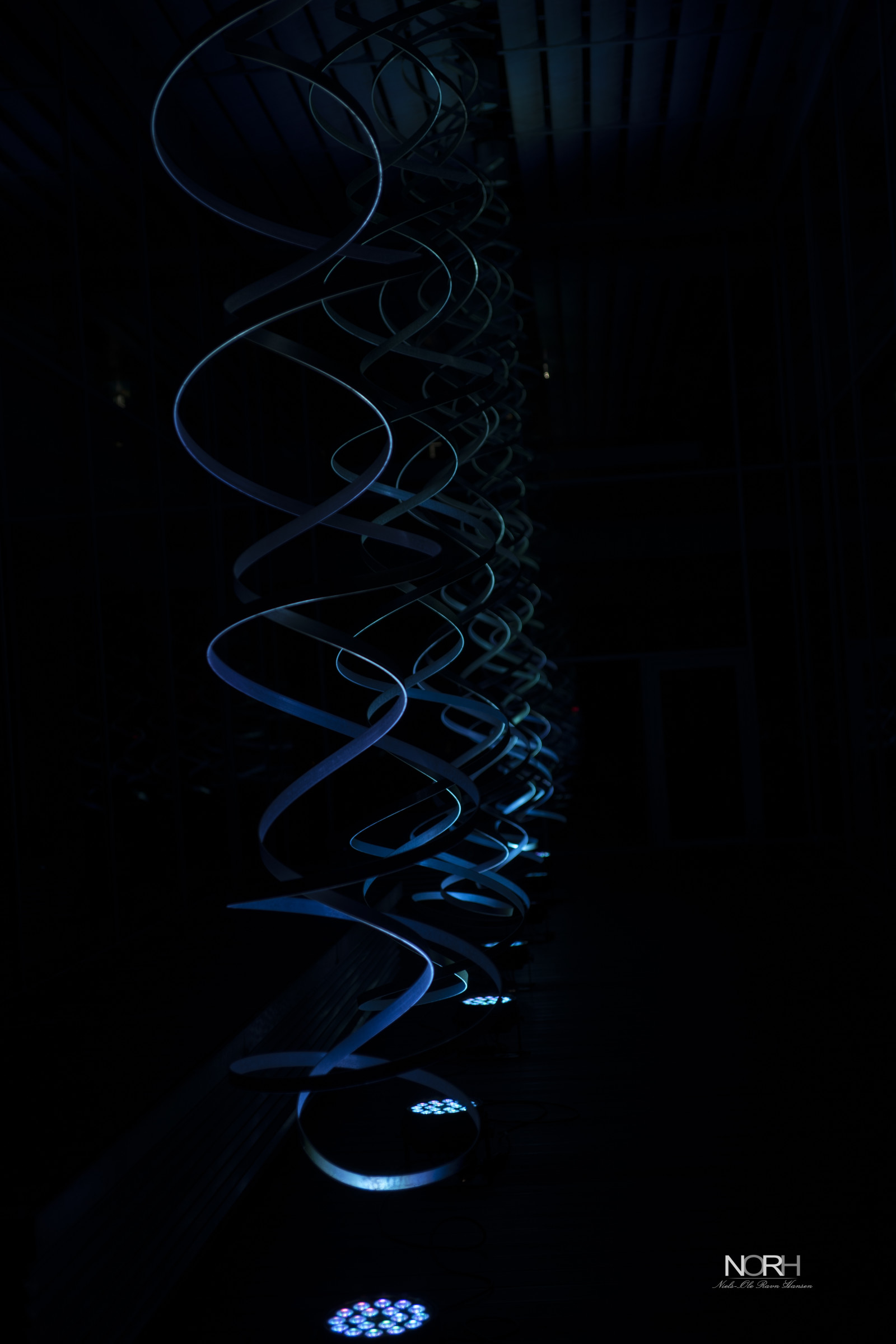 Her er spiralerne på kolding bibliotek skud på 50 iso så kun lyskilden er fremtrædende