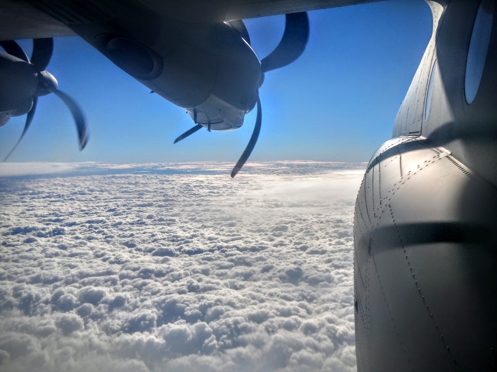 Ren fotografisk er det jo langt fra perfekt, da det er taget ud gennem en plexiglas boble, som hele tiden frøs til, men mere motivet. Som om man hænger uden på flyet i 8 kilometers højde.