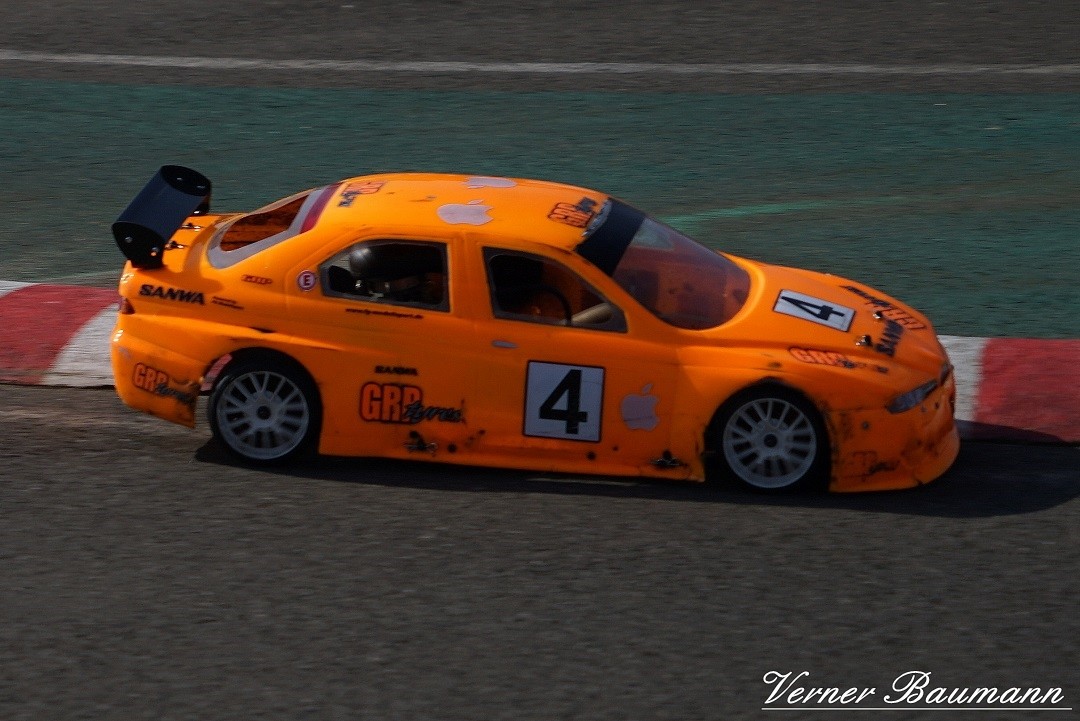Orange RC racer bil i fart