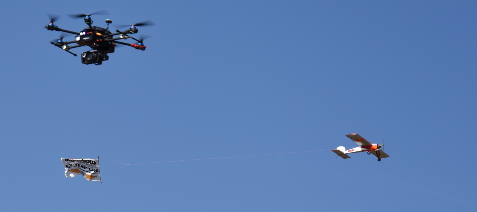 Godt billede med dronen og flyet på en gang.