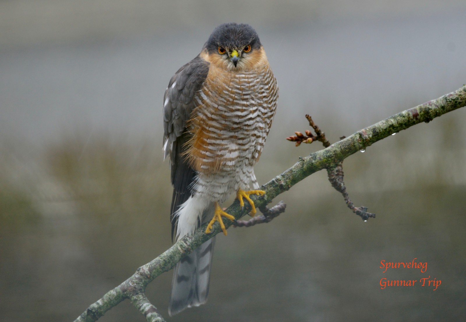 Regnfuld forårsdag i haven Spurvehøgen spejder på vores småfugle