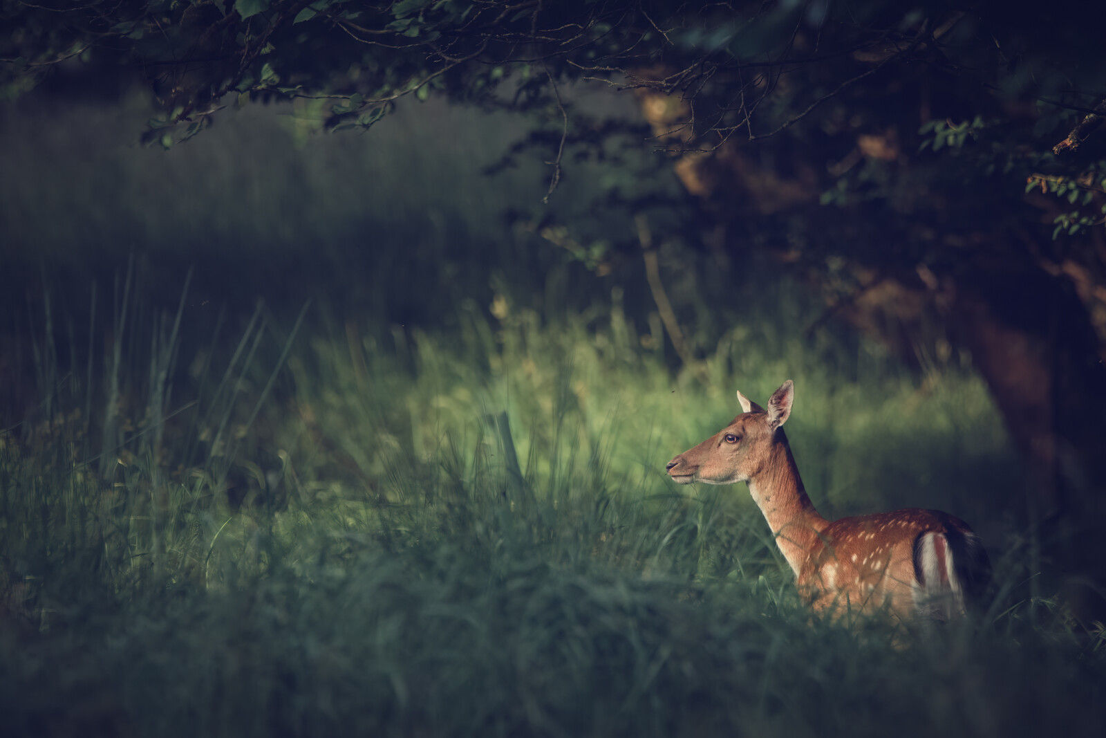 Ofte er jeg gået forbi dette lille sted. Et smukt sted hvor jeg flere gange er stoppet op og har sat mig ned for at vente. Dyrene går der. Har set dem og også fået nogle enkelte skud. Dog er det ikke lykkedes mig at få lige det billede som jeg ønskede. Lige indtil den lækre morgen sidste weekend. Morgenen hvor der lå en absolut helt fantastisk tåge gennem landskabet, som kun blev mere fantastisk som solen stod op og brændte sin vej gennem tågen så der kom et fantastisk gyldent lys. hurtigt var det dog også væk igen, men det gav energi. Lækker energi. Manglet energi. Energi jeg brugte på turen rundt med kameraet i armene. Indtil jeg atter kom forbi dette lille sted. Og inden længe stod hun der. Wow. En længe ventet drøm