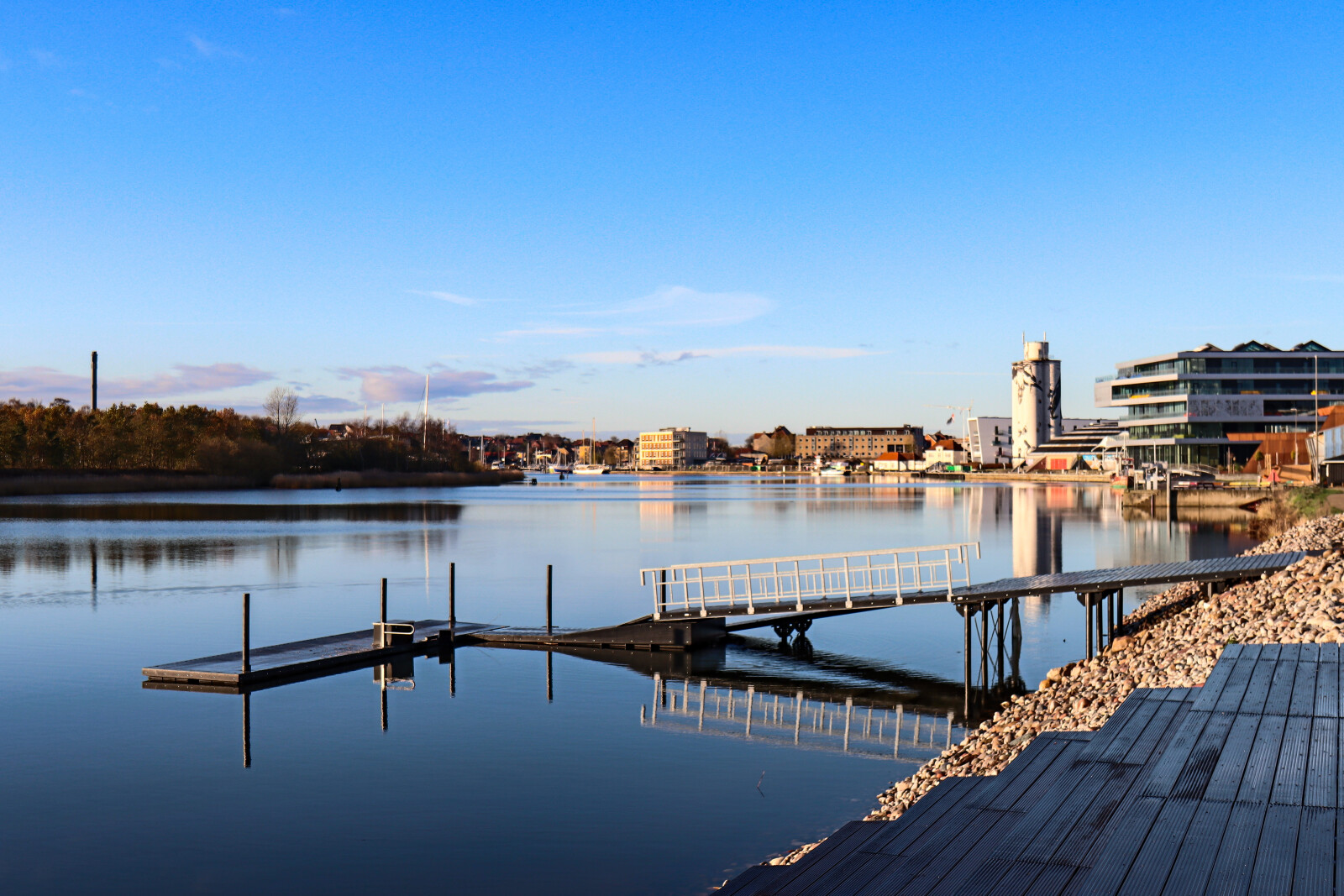 Haderslev Kajakklubs bro ved det nyopførte Blå Foreningshus ved fjorden.